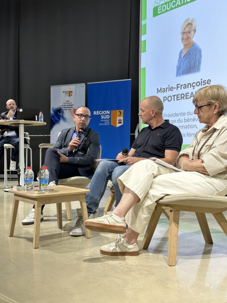 Animée par Sacha Prein, avec les interventions de Marie-Françoise Potereau (CNOSF) et de Lionel Amatte (inspecteur d’Académie), cette table ronde a mis en lumière le rôle du sport comme levier d’éducation et de transmission des valeurs. Les échanges ont porté sur les enjeux de parité dans la gouvernance sportive, notamment à travers le programme Club des 300, ainsi que sur les dynamiques éducatives en lien avec Génération 2030.