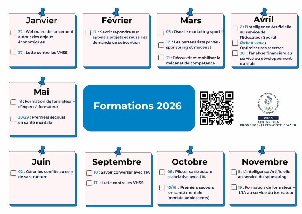 Avec le soutien des fonds conventionnels de la branche du sport au travers de l’AFDAS et de nos partenaires institutionnels Région Sud et ANS, nous nous efforçons de faciliter l’accès à la formation pour tous.